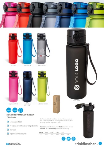 Die Sporttrinkflasche aus Tritan hat einen Sportverschluss