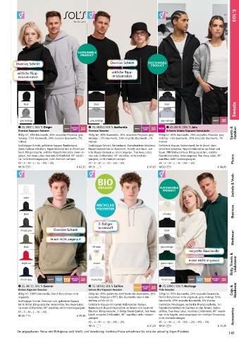 25.4720 | SOL'S Sundae 450g/m², 100% Baumwolle, French Terry (innen nicht 280g/m², 80% gekämmte zertifizierte Bio-Baumwolle, 20% 320g/m², 50% Baumwolle, 50% recycelte Baumwolle, Headwear