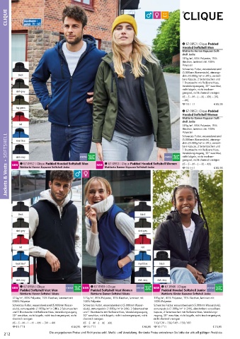 Jackets & Vests • SOFTSHELL NEW 67.0952 | Clique Padded Hooded So shell Men NEW 67.0953 | Clique Padded Hooded So shell Women geeignet, nicht chemisch reinigen