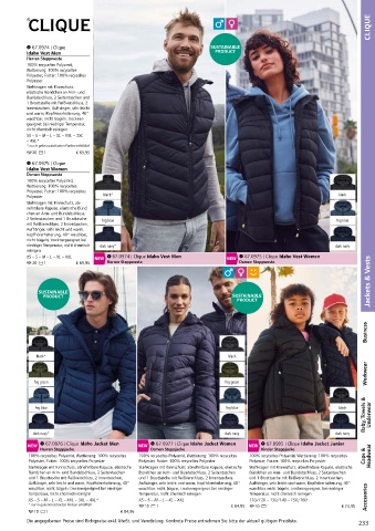 Bundabschluss, breite Brusttasche mit Klappe a 20 b 1 € 69,95 NEW 67.0974 | Clique Idaho Vest Men NEW 67.0975 | Clique Idaho Vest Women