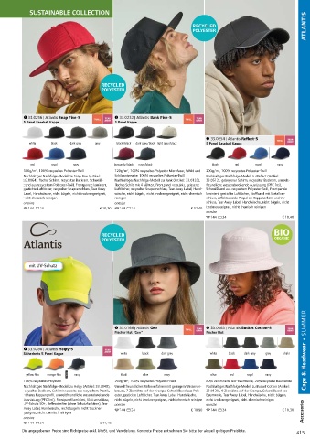 Caps & Headwear • SUMMER 33.0253 | Atlantis Pitch 33.0255 | Atlantis Snap Back-S grey 33.0250 | Atlantis Kid Snap Back-S 33.0280 | Atlantis Helpy-S 33.0166 | Atlantis Geo dark grey 33.0283 | Atlantis Bucket Cotton-S khaki Caps & Headwear • SUMMER