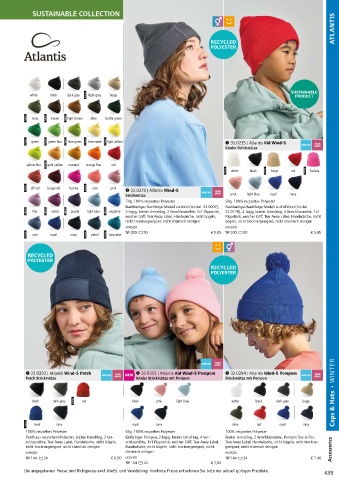 Caps & Headwear • SUMMER 25.8811 | SOL'S Buzz sand forest green 25.0594 | SOL'S Long Beach red/white dark purple 25.3998 | SOL'S Bucket 2 in 1 33.0293 | Atlantis Wind-S Patch NEW black pink light blue 33.0294 | Atlantis Wind-S Pompom beige Caps & Hats • WINTER