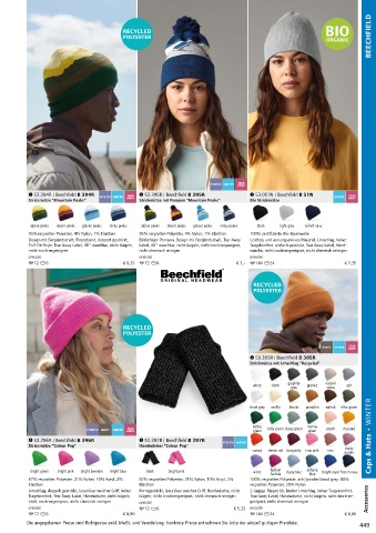 Caps & Hats • WINTER BEST 53.0310 | Beechfield B 310 Strickmütze mit Streifen "Fan" 53.0401 | Beechfield B 401 53.396R | Beechfield B 396R 53.397R | Beechfield B 397R bottle kelly green dusty green true pink peach mustard Caps & Hats • WINTER
