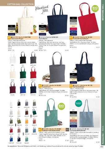 140g/m², 100% Baumwolle 210g/m², 100% gekämmte zertifizierte Bio-Baumwolle, 140g/m², 100% Baumwolle 50.0201 | Westford Mill W 201 50.0125 | Westford Mill W 125