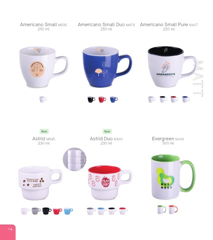Americano Small M535 Americano Small Duo M473 Americano Small Pure M467 250 ml 250 ml 250 ml MAT New New T Astrid M545 Astrid Duo M546 Evergreen M499 230 ml 230 ml 300 ml 14
