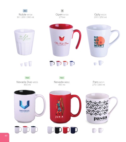 EU R Noble M134 Open M100 Opty M026 90 | 260 | 360 ml 270ml 200 | 250 ml New New Nevada Duo M553 Nevada M552 Paro M121 450 ml 450 ml 270 | 380 ml 40