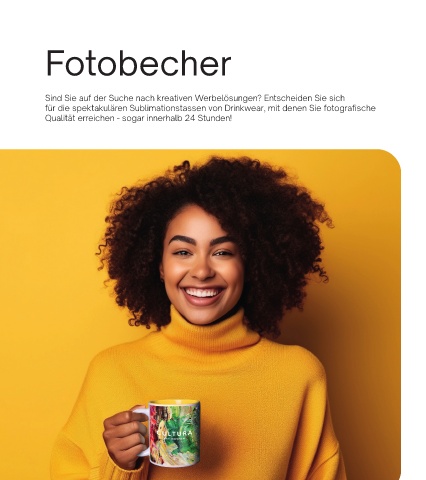 Fotobecher Sind Sie auf der Suche nach kreativen Werbelösungen? Entscheiden Sie sich für die spektakulären Sublimationstassen von Drinkwear, mit denen Sie fotografische Qualität erreichen - sogar innerhalb 24 Stunden! 52