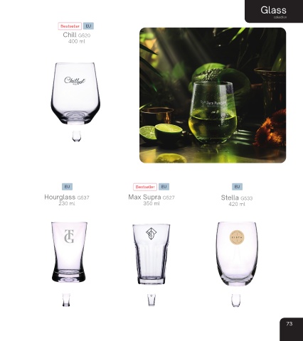 Glass collection Bestseller EU Chill G520 400 ml EU Bestseller EU EU Hourglass G537 Max Supra G527 Stella G533 230 ml 350 ml 420 ml 73
