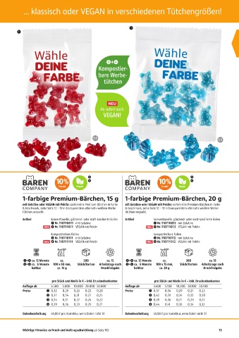 1-farbige Premium-Bärchen, 15 g 1-farbige Premium-Bärchen, 20 g