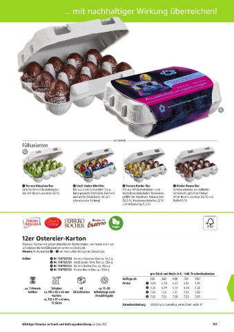 u Ferrero Küsschen Eier v Lindt Lindor Mini-Eier w Ferrero Rocher Eier x Kinder Bueno Eier