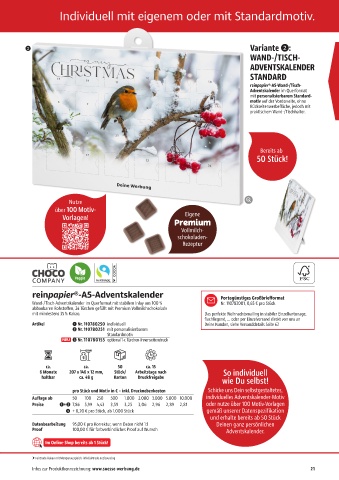 Auflage ab 50 100 250 500 1.000 2.000 3.000 5.000 10.000 individuelles Advents kalender-Motiv