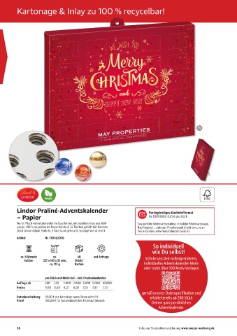 pappe, 100 % recycelbar im Papierkreislauf, 24 Türchen gefüllt mit feinsten flachliegend, … oder per Einzelversand direkt von uns an