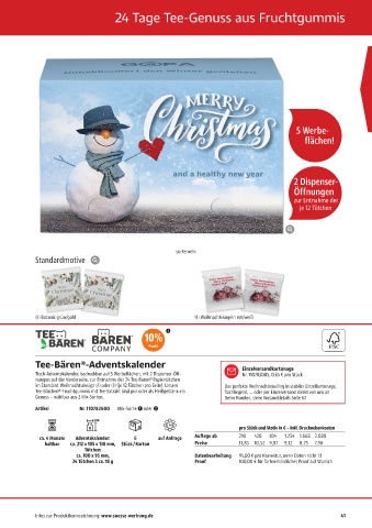 nungen auf der Vorderseite, zur Entnahme der 24 Tee-Bären® Papiertütchen