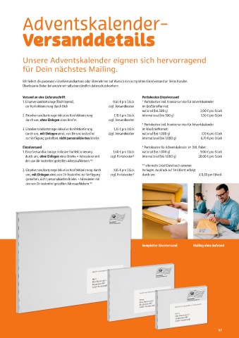 1. Einzelversandkartonage (flachliegend), 0,65 € pro Stück * Portokosten inkl. Frankierservice für Advents kalender