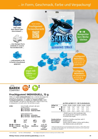 1 nach Druckfreigabe 2 nach Druck- und Werkzeugfreigabe 3 Das Fruchtgummi Stückgewicht wird bei der Herstellung je nach Form/Motiv ermittelt