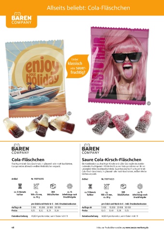 Fruchtgummi mit Cola-Geschmack, in glänzend- oder matt-kaschiertem, Die Kombination aus fruchtiger Kirsche und süßer Cola ergibt ein atembe-