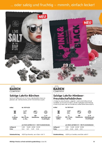 Salmiaksalz, ohne künstliche Aromen) und rotes Fruchtgummi mit Himbeerge-