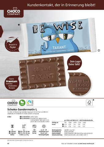 Eine Tafel mit Deinem Logo individuell gegossen in feinste Premium Vollmilch-