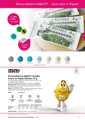 Hinweis: Die personalisierten M&M’S® Schokolinsen können bei der Abpackung
