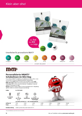 Hinweis: Die personalisierten M&M’S® Schokolinsen können bei der Abpackung