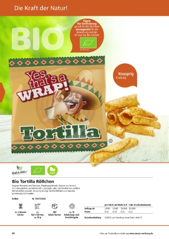 Werbe tütchen verpackt. Knusprig würzige Tortilla Röllchen zum Snacken