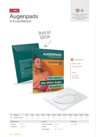 Druckfarben: 4c CMYK Gewicht: 20 g