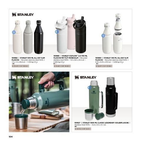 100882 | STANLEY 600 ML ALL DAY SLIM FLASCHE MIT FLIP-TRINKHALM | Recycled 100883 | STANLEY 350 ML ALL DAY SLIM