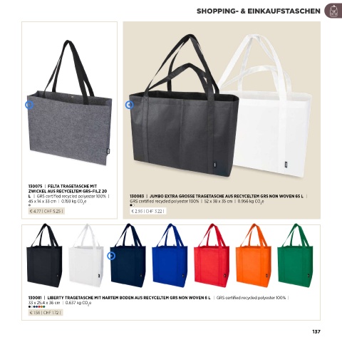 L | GRS certified recycled polyester 100% | 130083 | JUMBO EXTRA GROSSE TRAGETASCHE AUS RECYCELTEM GRS NON WOVEN 65 L |