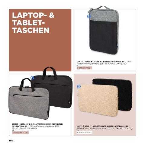 39 x 2.5 x 28 cm | 2.174 kg CO e GRS certified recycled polyester 100% | 33.5 x 2 x 24 cm | 1.159 kg CO e