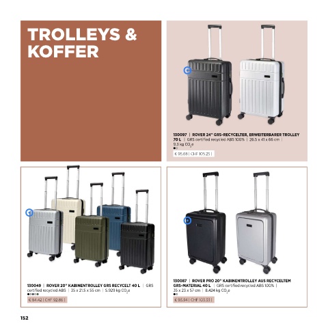 certified recycled ABS | 35 x 21.5 x 55 cm | 5.929 kg CO e 35 x 23 x 57 cm | 8.424 kg CO e