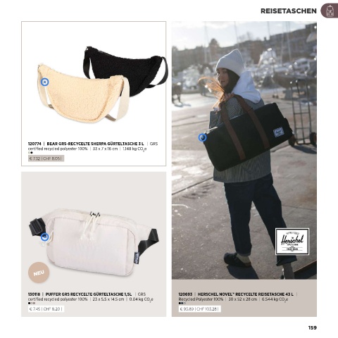 130118 | PUFFER GRS RECYCELTE GÜRTELTASCHE 1,5L | GRS 120693 | HERSCHEL NOVEL™ RECYCELTE REISETASCHE 43 L |