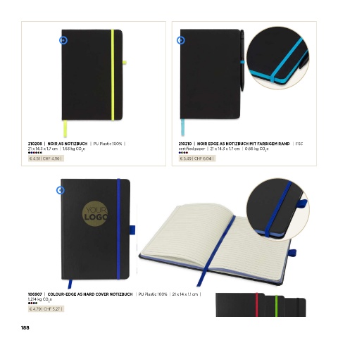 210208 | NOIR A5 NOTIZBUCH | PU Plastic 100% | 210210 | NOIR EDGE A5 NOTIZBUCH MIT FARBIGEM RAND | FSC