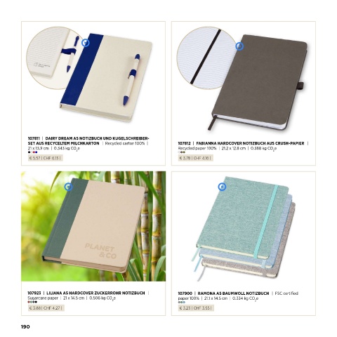 107923 | LILIANA A5 HARDCOVER ZUCKERROHR NOTIZBUCH | 107900 | RAMONA A5 BAUMWOLL NOTIZBUCH | FSC certified