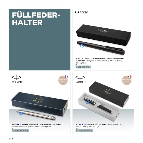 107420 | PARKER JOTTER FÜLLFEDERHALTER EDELSTAHL | 107760 | PARKER IM FÜLLFEDERHALTER | Brass 100% |