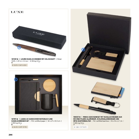 KUGELSCHREIBER SET | FSC certified paper | 32 x 27 x 10.3 cm | RFID-KARTENHALTER | FSC certified bamboo | 16 x 16 x 2.7 cm |