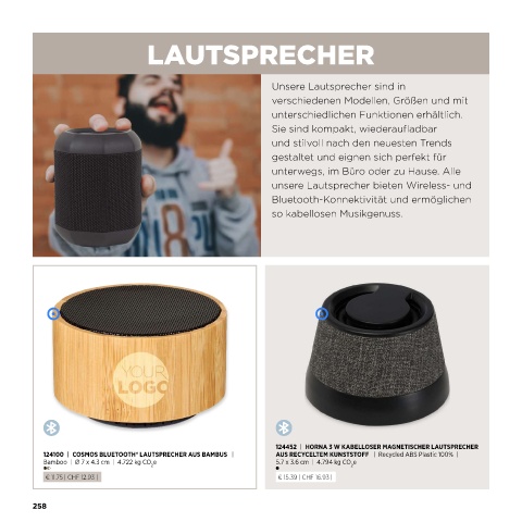 124100 | COSMOS BLUETOOTH® LAUTSPRECHER AUS BAMBUS | AUS RECYCELTEM KUNSTSTOFF | Recycled ABS Plastic 100% |