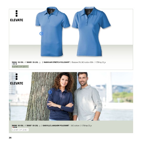 38084 XS-3XL m 38085 XS-2XL f | MARKHAM STRETCH POLOSHIRT | Elastane 5%, BCI cotton 95% | 1.738 kg CO e