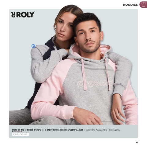 HOODIES R1058 XS-3XL ZK1058 3/4-11/12 k | BADET ZWEIFARBIGER KAPUZENPULLOVER | Cotton 50%, Polyester 50% | 3.503 kg CO e k 2 € 19.95 | CHF 21.95 | 31