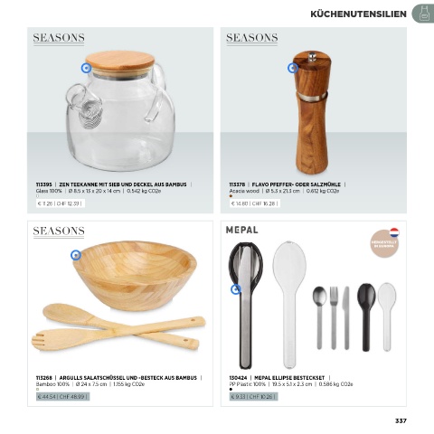 113395 | ZEN TEEKANNE MIT SIEB UND DECKEL AUS BAMBUS | 113378 | FLAVO PFEFFER- ODER SALZMÜHLE |