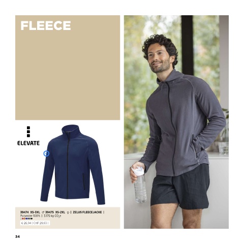 FLEECE 39474 XS-3XL m 39475 XS-2XL f | ZELUS FLEECEJACKE | m f Polyester 100% | 3.175 kg CO e 2 € 26,94 | CHF 29,63 | 34