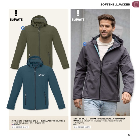 39311 XS-3XL m 39312 XS-2XL f | LANGLEY SOFTSHELLJACKE | MATERIAL | GRS certified recycled polyester, Polyester, Elastane |