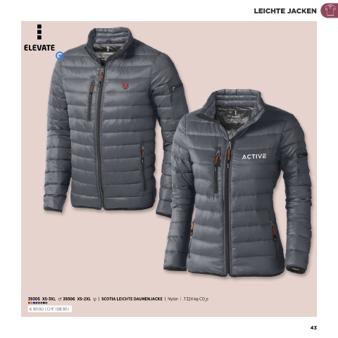 LEICHTE JACKEN 39305 XS-3XL m 39306 XS-2XL f | SCOTIA LEICHTE DAUNENJACKE | Nylon | 7.324 kg CO e f m 2 € 99.00 | CHF 108.90 | 43