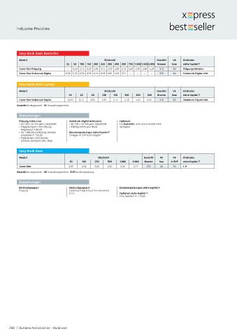 Modell Stückzahl Gewicht VE Eindrucke