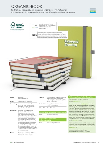 Umfang 192 Seiten plus Einstecktasche aus 39 % Apfelresten Einband appleorganic