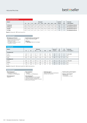 Modell Stückzahl Gewicht VE VE Eindrucke