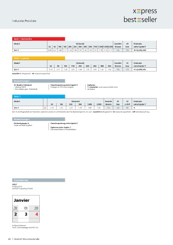 Modell Stückzahl Gewicht VE Eindrucke