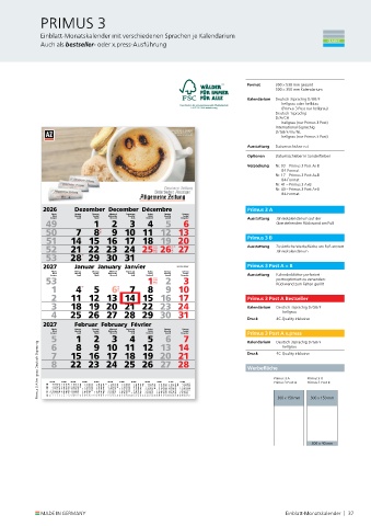 2026 Dezember December Décembre Primus 3 A