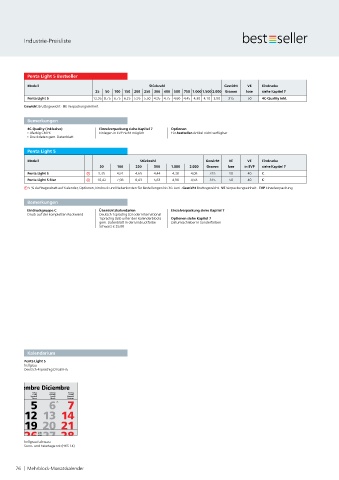 5 % Auftragsrabatt auf Kalender, Optionen, Eindruck und Nebenkosten für Bestellungen bis 30. Juni · Gewicht Bruttogewicht · VE Verpackungseinheit · EVP Einzelverpackung